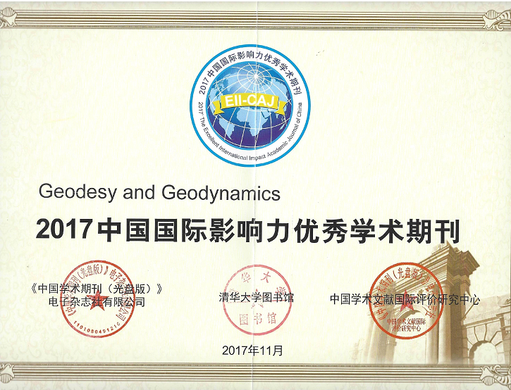 Geodesy and Geodynamics Awarded 2017 Excellent International Impact Academic Journals of China