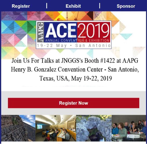 JNGGS will participate in AAPG 2019 Annual Convention & Exhibition (2019 ACE) (https://ace.aapg.org/2019/)as a media partner and will introduce and promote the journal at a booth. Welcome to visit and talk with us at JNGGS's Booth #1422 at AAPG Henry B. Gonzalez Convention Center - San Antonio, Texas, USA, May 19-22, 2019. If you need free exhibition guest pass, please contact us (jnggs@lzb.ac.cn).