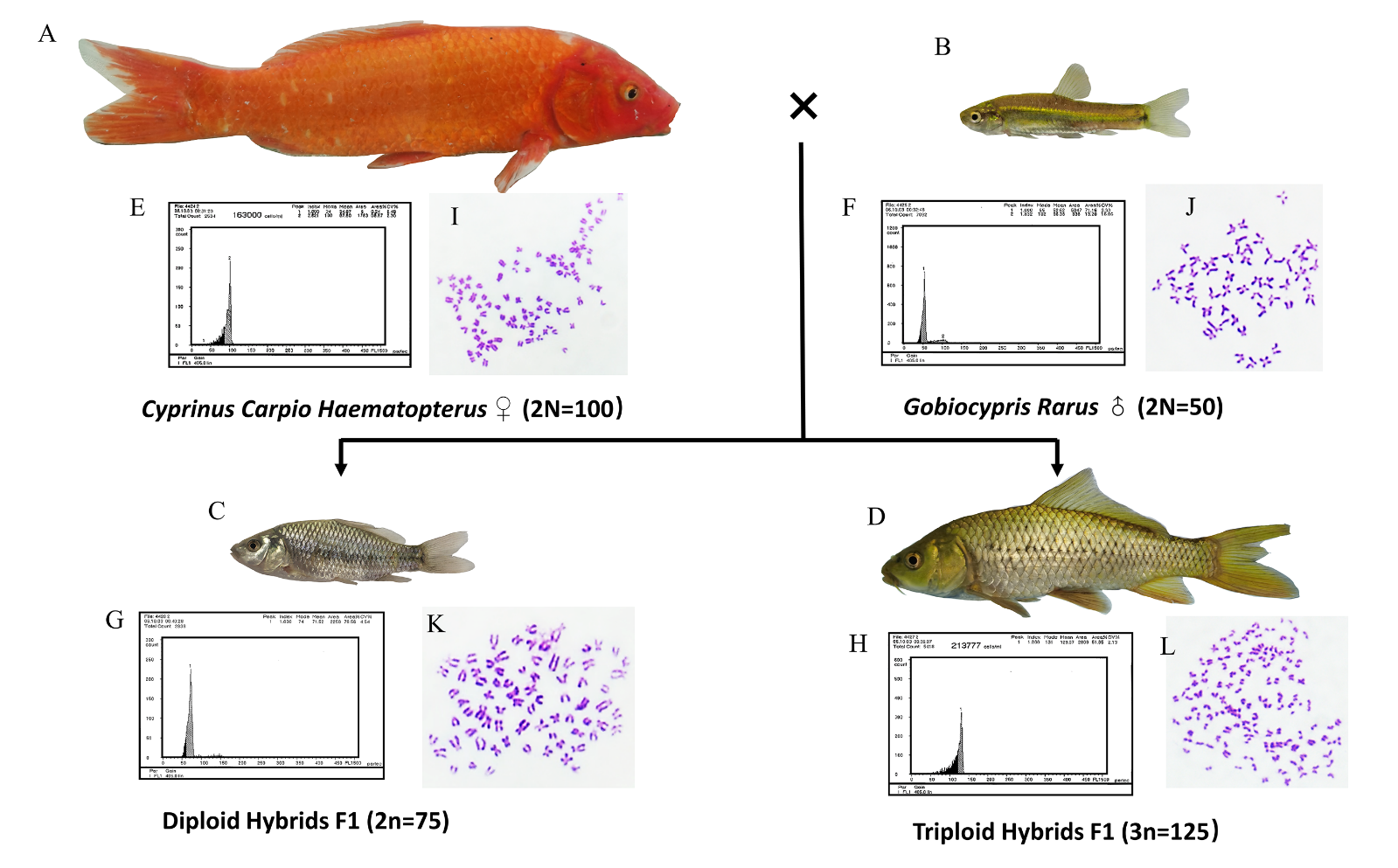 See the article: Wang, M., et al., Characterization of allodiploid and allotriploid fish derived from hybridization between Cyprinus carpio haematopterus (♀) and Gobiocypris rarus (♂), Reproduction and Breeding, Volume 4, Issue 1, 2024, Pages 46-54, https://doi.org/10.1016/j.repbre.2023.12.005.