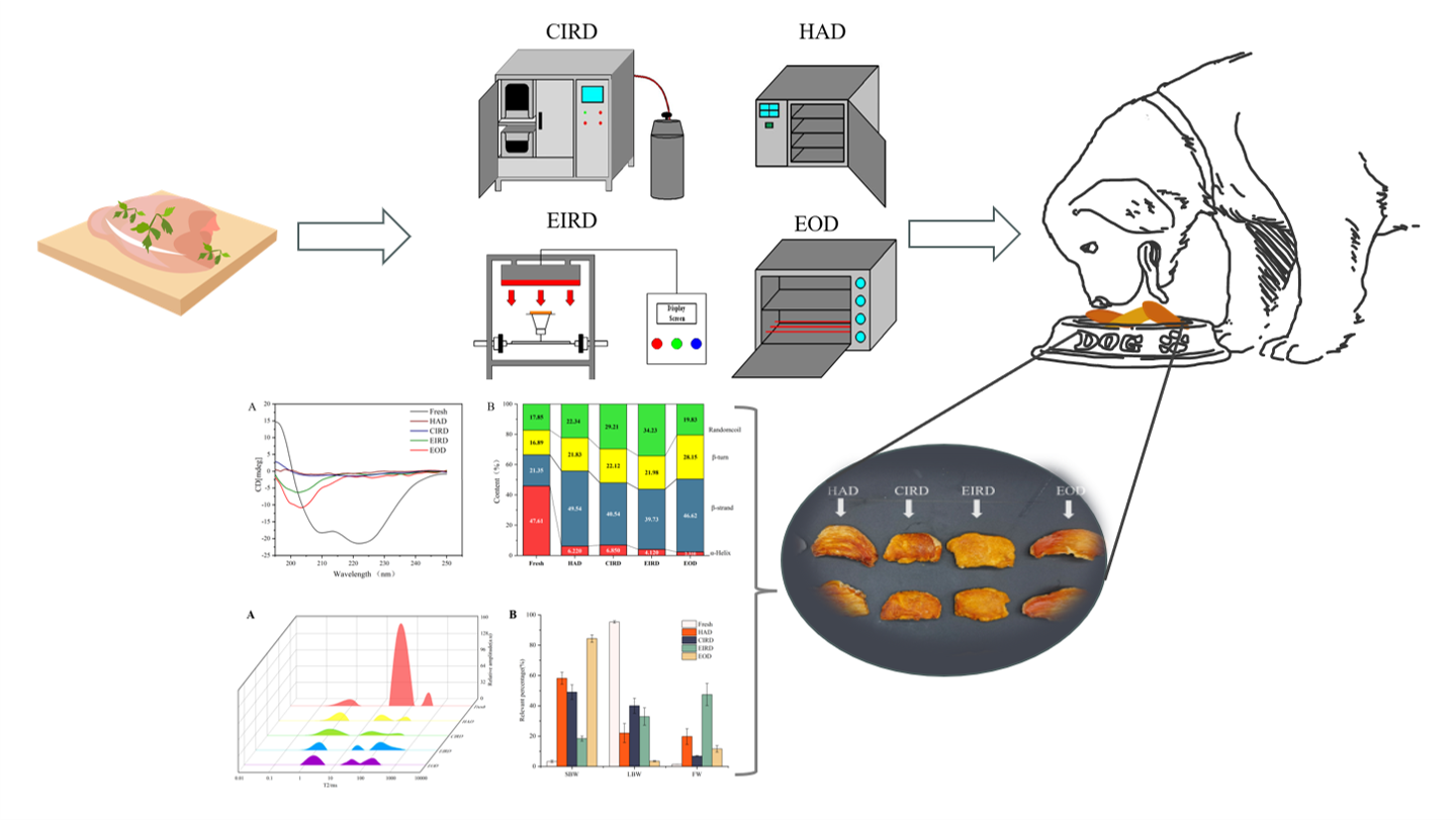 In a new study conducted by researchers from Jiangsu University in Zhenjiang, China, four drying methods, HAD, EOD catalytic infrared drying (CIRD) and electric infrared drying (EIRD), were used to prepare dried chicken breast. The drying efficiencies of the different methods and their effects on physico-chemical properties, pet food applications, energy consumption and costs were systematically compared.