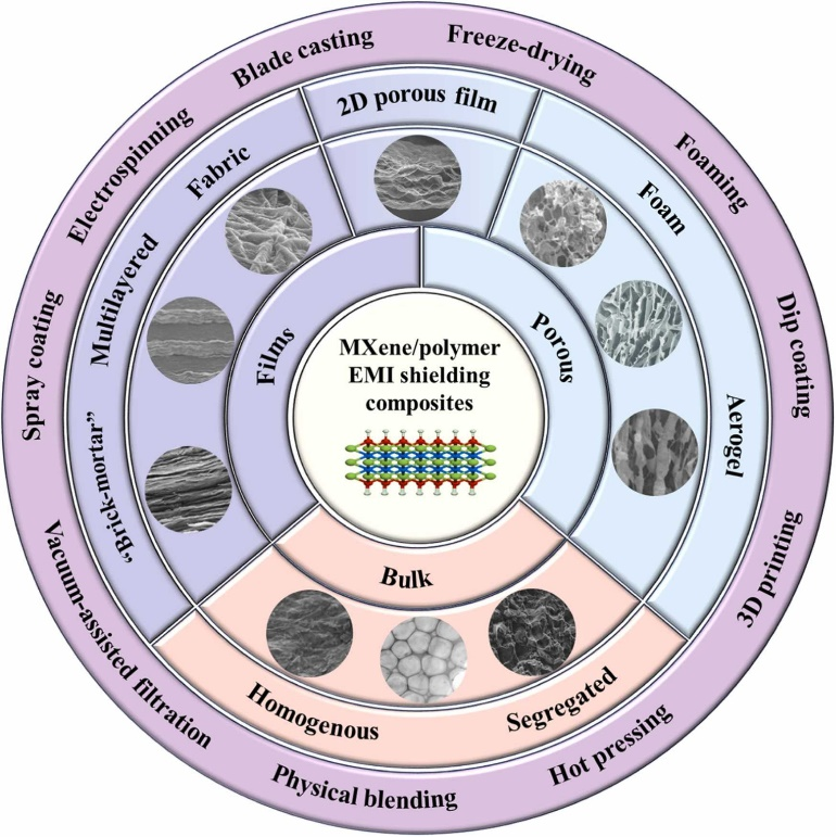 "Specific processing routes can greatly affect the microstructure of composites, and different structural design can improve the performance of composite materials or endow them new functions," explains the review’s senior and corresponding author, Xianhu Liu, a professor at the National Engineering Research Center for Advanced Polymer Processing Technology at Zhengzhou University. "It is crucial to ensure a strong interface bonding between MXene nanosheets and polymer matrix during the preparation of composite materials, which will significantly affect the electromagnetic shielding performance and application stability of the nanocomposite.”