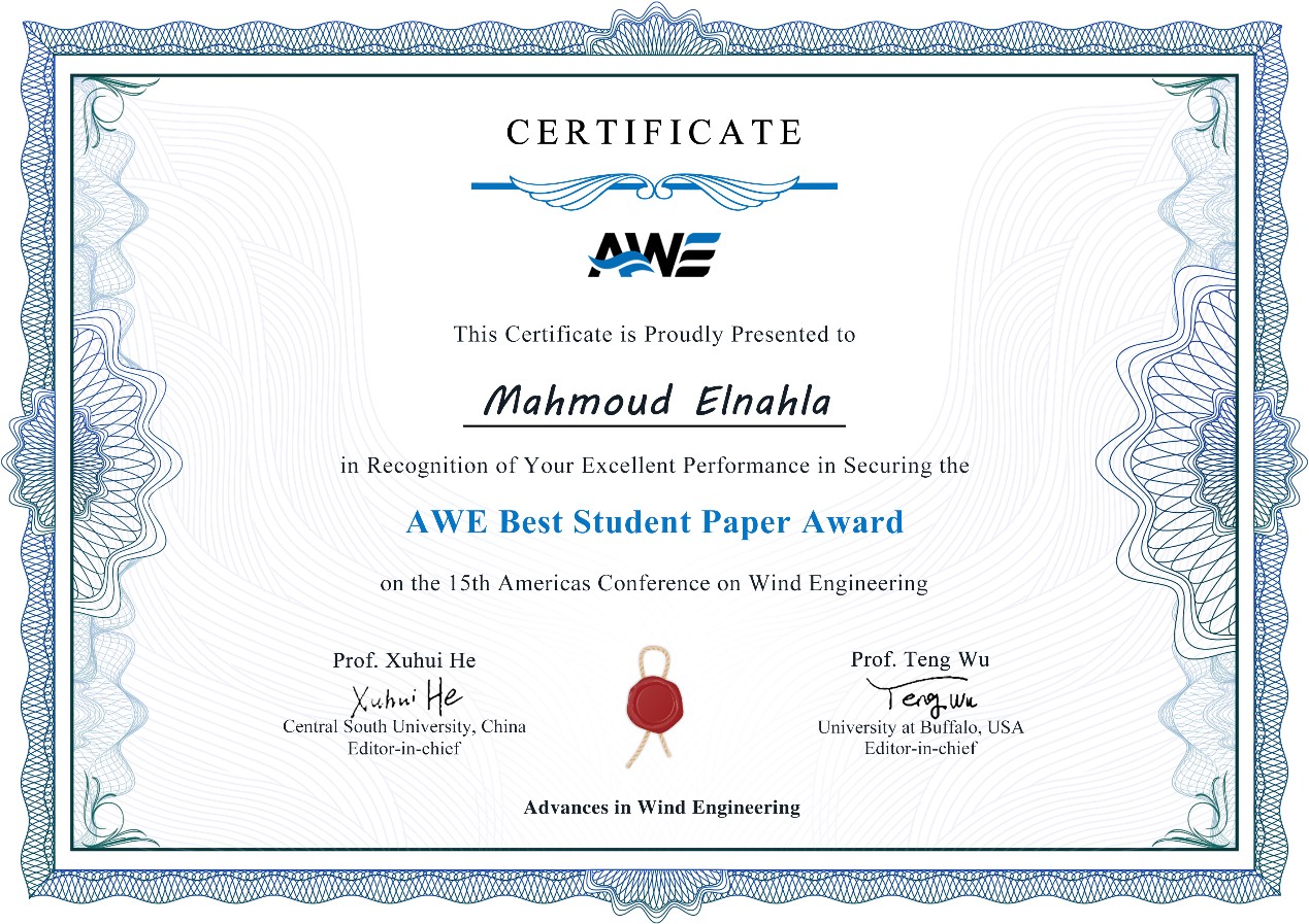 At the recently concluded 15th Americas Conference on Wind Engineering (2025 ACWE), the inaugural AWE Best Student Paper Award was successfully held. This marks the first time AWE has established such an award for students at an international conference, an initiative aimed at inspiring and celebrating excellence among students in the field of wind engineering.