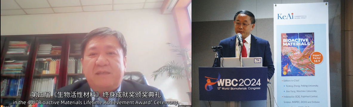 The award ceremony of the 2024 Bioactive Materials Lifetime Achievement Award was held at WBC 2024, 27 May 2024.