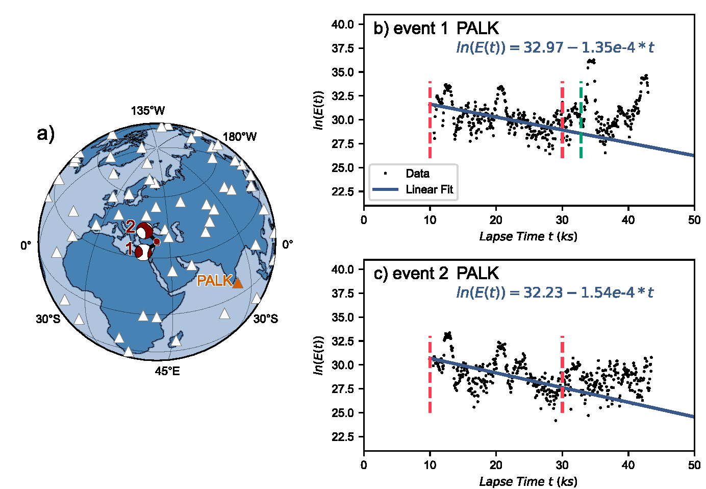 Image: Illustration of the seismic event, station distribution, and coda wave energy. CREDIT: THE AUTHORS