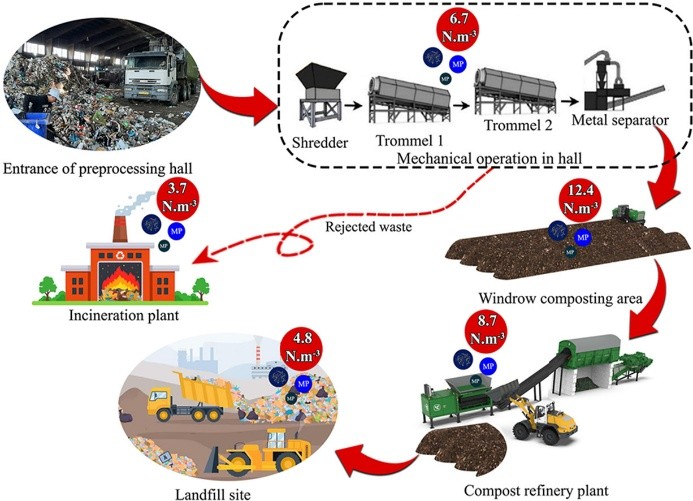 Airborne microplastics pollution in municipal solid waste processing and disposal complex: Concentration, characterization, and composition