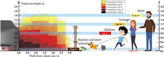 Fresh tire wear particles from moving vehicles: Dispersion dynamics, exposure, and prevention strategy