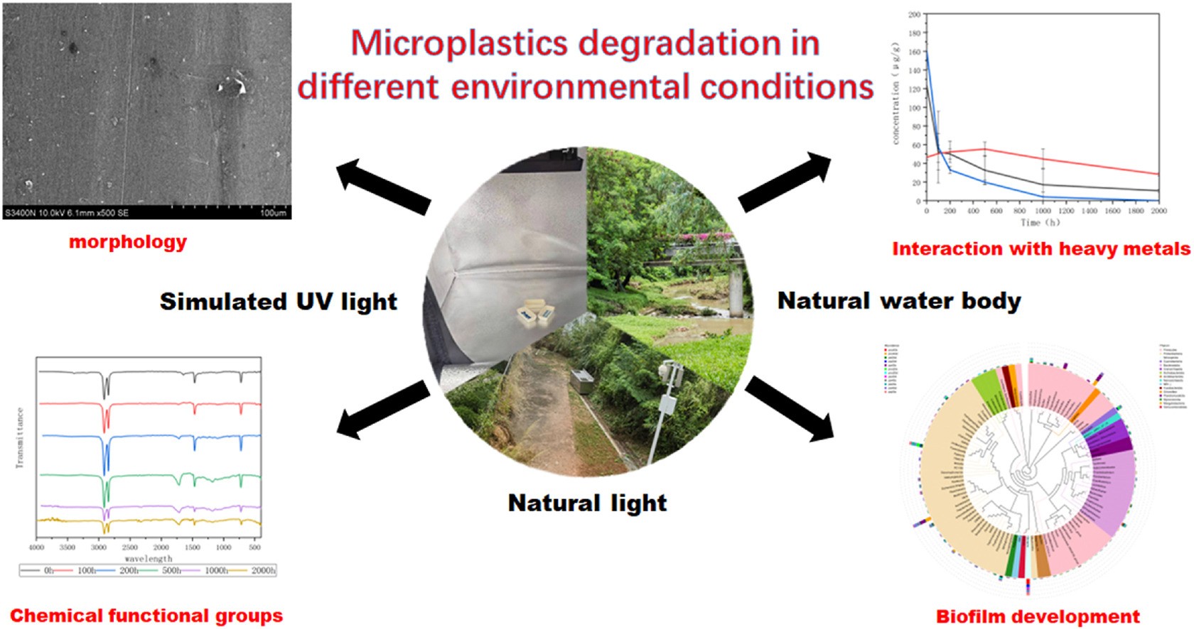 Microplastic degradations in simulated UV light, natural light and natural water body: A comparison investigation