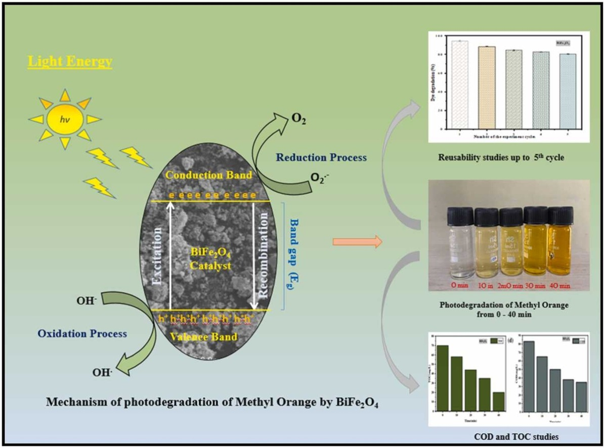 5. Hydrothermal synthesis of BiFe2O4 heterostructure for photodegradation of dye and biological implications