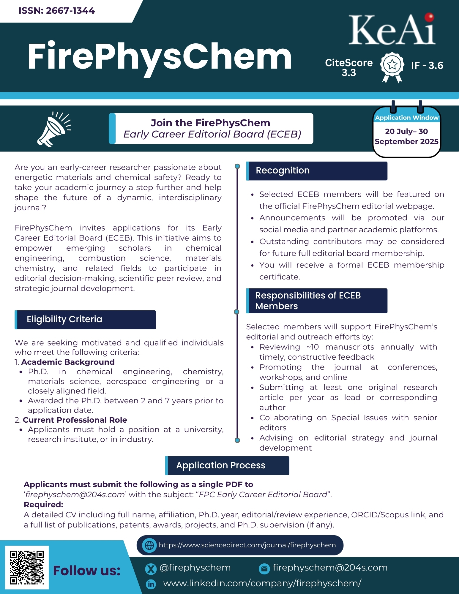 FirePhysChem invites applications for its Early Career Editorial Board (ECEB). This initiative aims to empower emerging scholars in chemical engineering, combustion science, materials chemistry, and related fields to participate in editorial decision-making, scientific peer review, and strategic journal development.