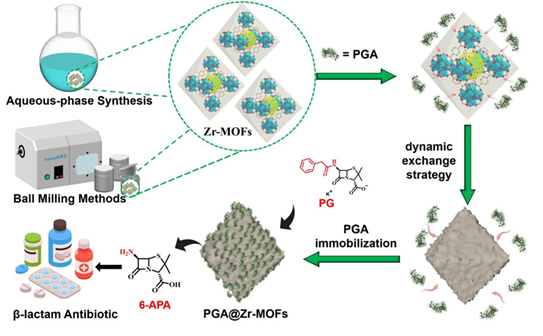 See the article: Heng Hu, et al., Dynamic exchange strategy for enzyme immobilization in Zr-based metal-organic frameworks for green synthesis of β-lactam antibiotics, Green Chemical Engineering, Available online 7 March 2025,
