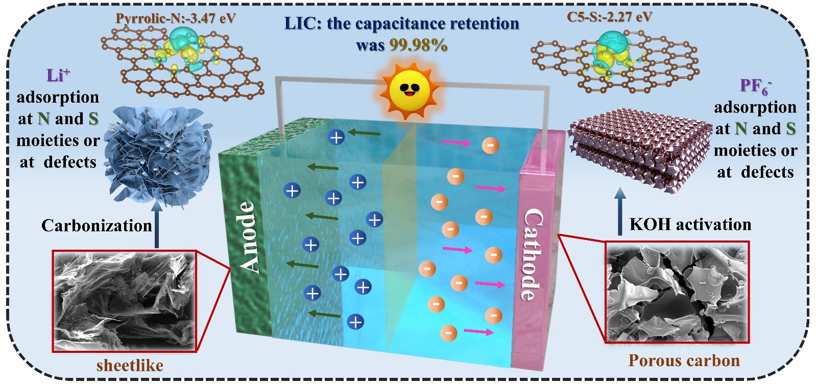 A promising strategy is to modify the high-conductive hard carbon anode, which exhibits excellent structural stability, to match it with an activated carbon cathode, thus creating a dual-carbon LIC (lithium-ion capacitor). In this study, a one-pot in-situ expansion and heteroatom doping strategy was employed to prepare sheet-like hard carbon, while the activated carbon was obtained through activation processes.
