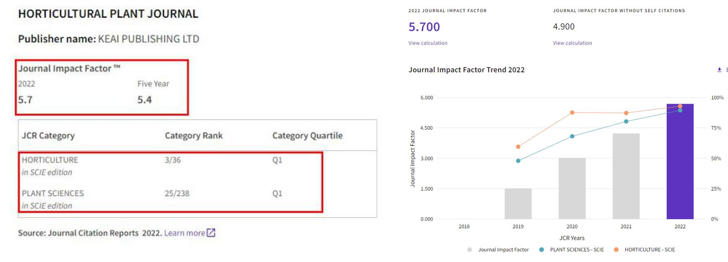 Warmest congratulations: Horticultural Plant Journal received 2022 SCI Impact Factor 5.7