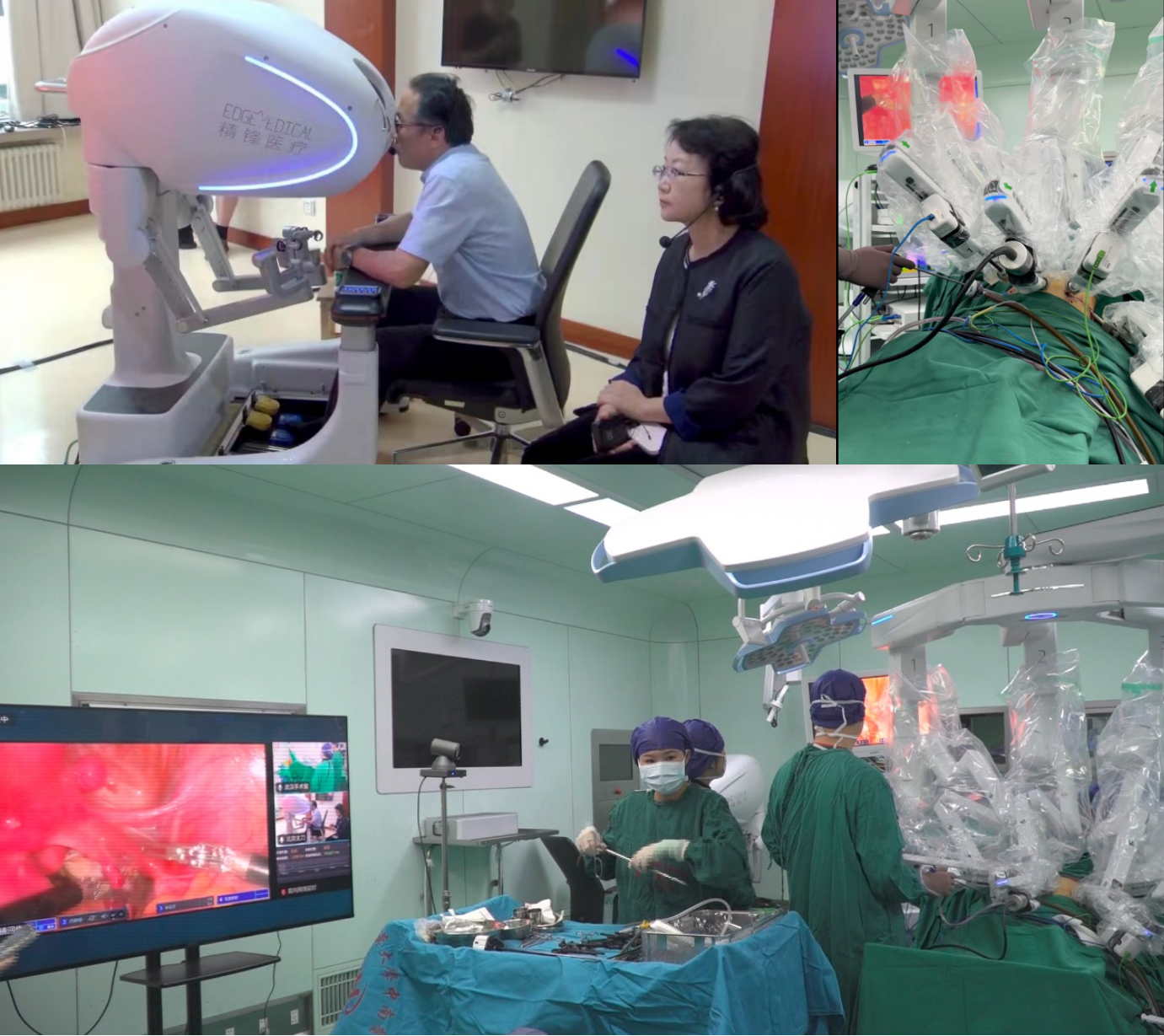 The surgeon was located at the Chinese People's Liberation Army General Hospital in Beijing. Operation instructions were entered using the surgical console, and were then transmitted via the dedicated network data line to the slave console in Wuhan and converted into actual operative actions. The three-dimensional images captured by the endoscope from the slave console served as visual signals, and were transmitted back to the surgeon console's screen in real time via a 5G network dedicated line, forming a closed-loop operation.