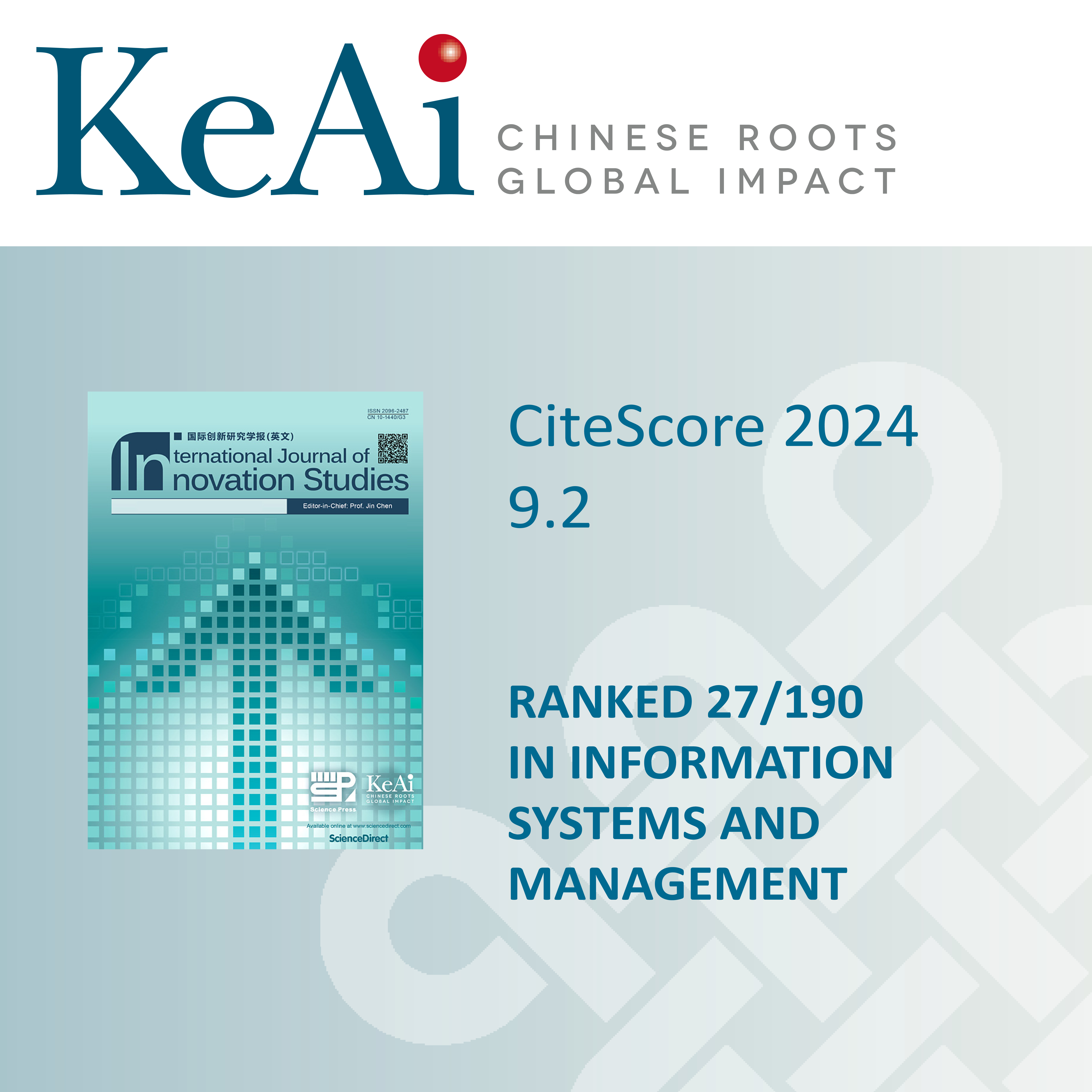 We are delighted to announce the CiteScore 2024* for International Journal of Innovation Studies is 9.2.