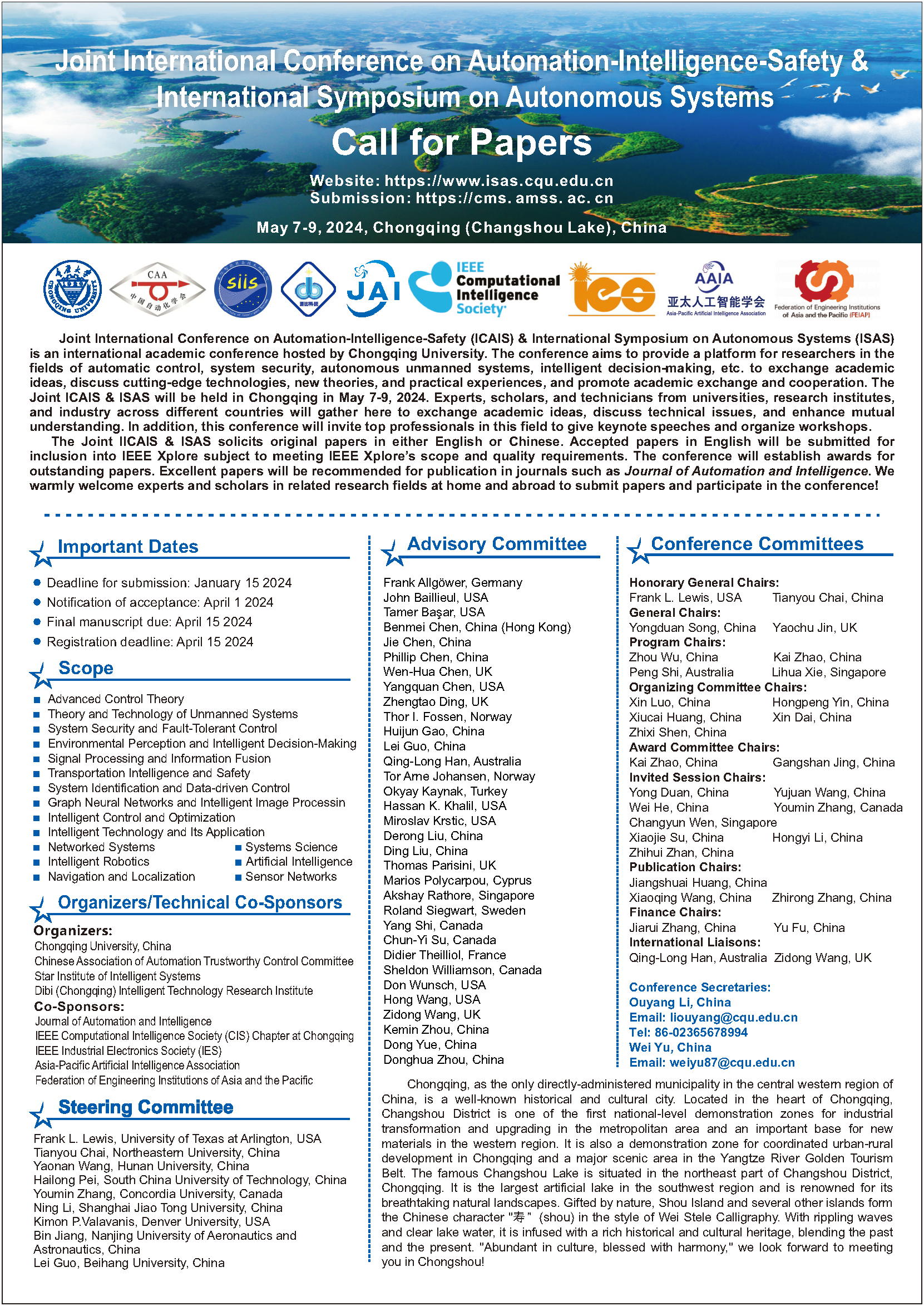 Joint International Conference on Automation-Intelligence-Safety & International Symposium on Autonomous Systems