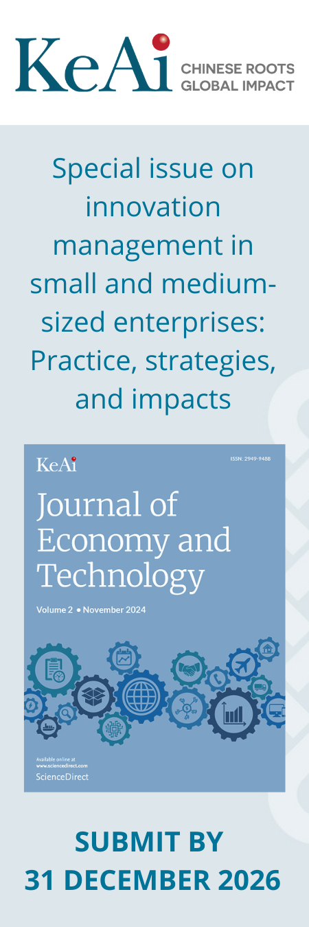 The Journal of Economy and Technology (JET) is an open access, peer-reviewed academic journal that provides an international forum for scholarly interaction and research on economics, management and technology. JET features papers on (i) cutting-edge technologies, and (ii) economics and management (with technology or innovation elements). The journal provides a means for scientists and engineering scholars to assess the economic, managerial and policy implications of the technology development, and provides economists with an important resource to understand technological innovations for economic development.
