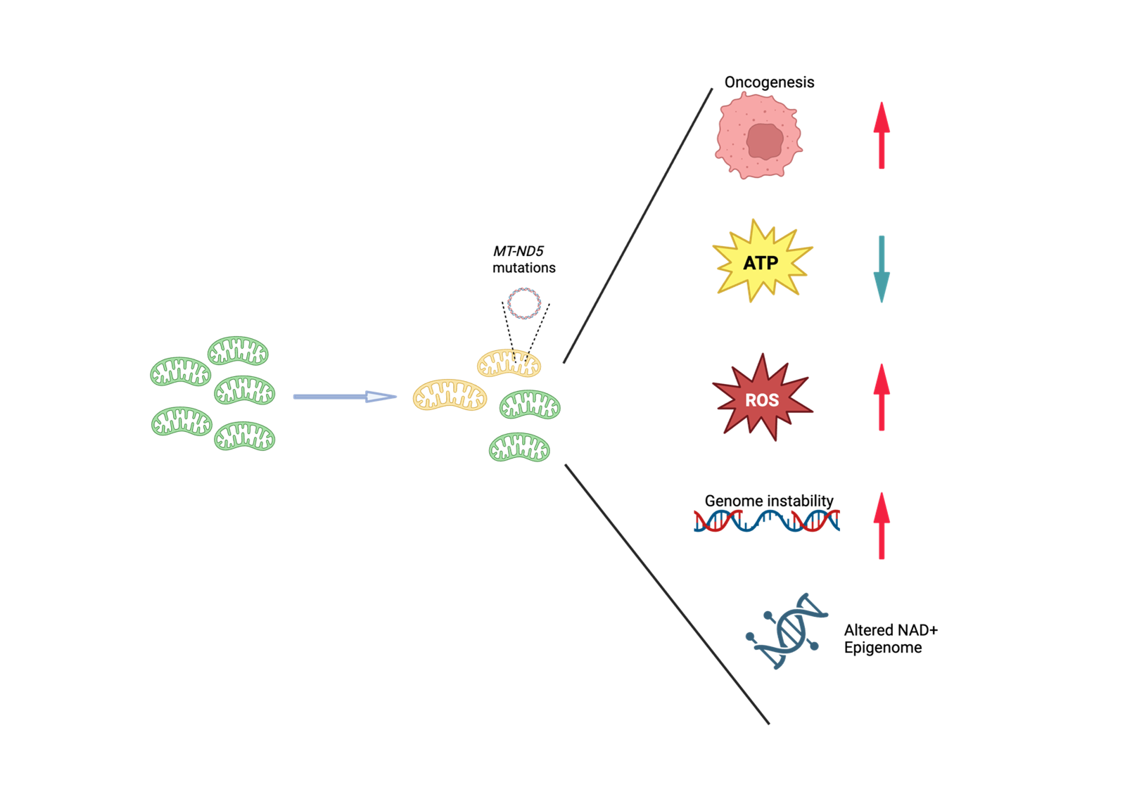 Mitochondria are semi-autonomous organelles containing their own DNA (mtDNA), which exhibits a higher mutation rate compared to nuclear DNA. Accumulation of mtDNA mutations is associated with aging and has been observed in various cancers. However, the causal role of these mutations in oncogenesis remains unclear.