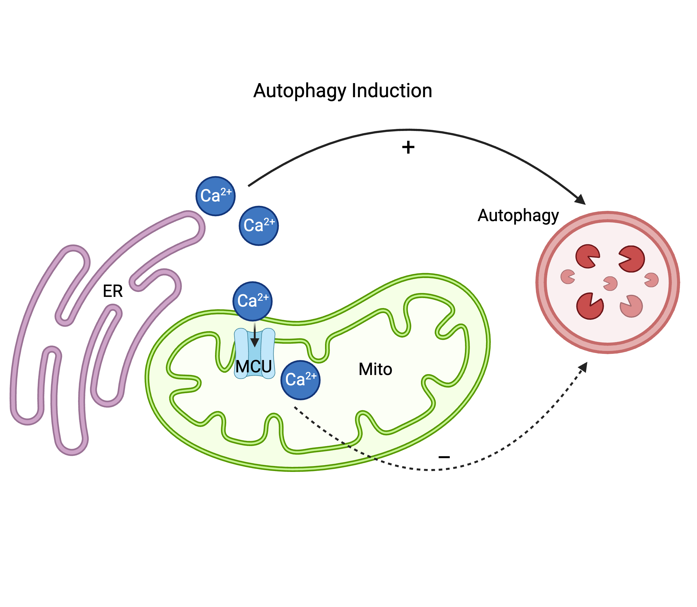 Autophagy is a self-eating process for recycling and rejuvenating cellular organelles and components. Intracellular calcium dynamics has been shown to be essential for the initiation of the autophagy process. Mitochondria are a major calcium store within the cell and mitochondria import cytosolic calcium when its level is elevated. However, whether and how mitochondria import calcium during autophagy initiation and whether the uptake of calcium by mitochondria impinges on the autophagy process are not well explored. The answers to these questions could have significant physiological and pathophysiological relevance and shed light on disease mechanisms.