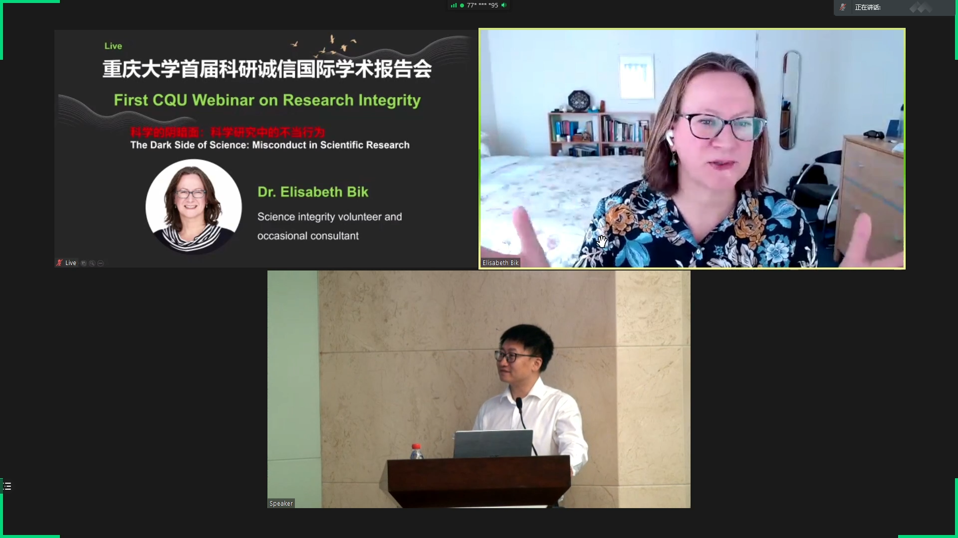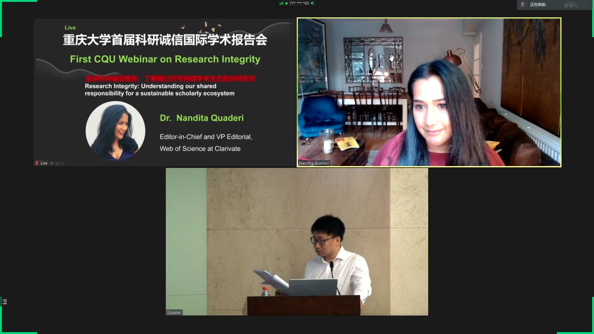 Prof. Ju was joined by guest speakers Professor Zhang Yuehong of Zhejiang University, Dr. Nandita Quaderi, Editor-in-Chief of Clarivate Web of Science, and Dr. Elisabeth Bik, a Research Integrity Consultant. They shared their perspectives as scientists and journal editors and spoke about open science and research integrity and creating an academic ecology to identify misconduct in research integrity. They also proposed new initiatives to deal with academic misconduct, and called on the whole community to play a more active role in building research integrity.