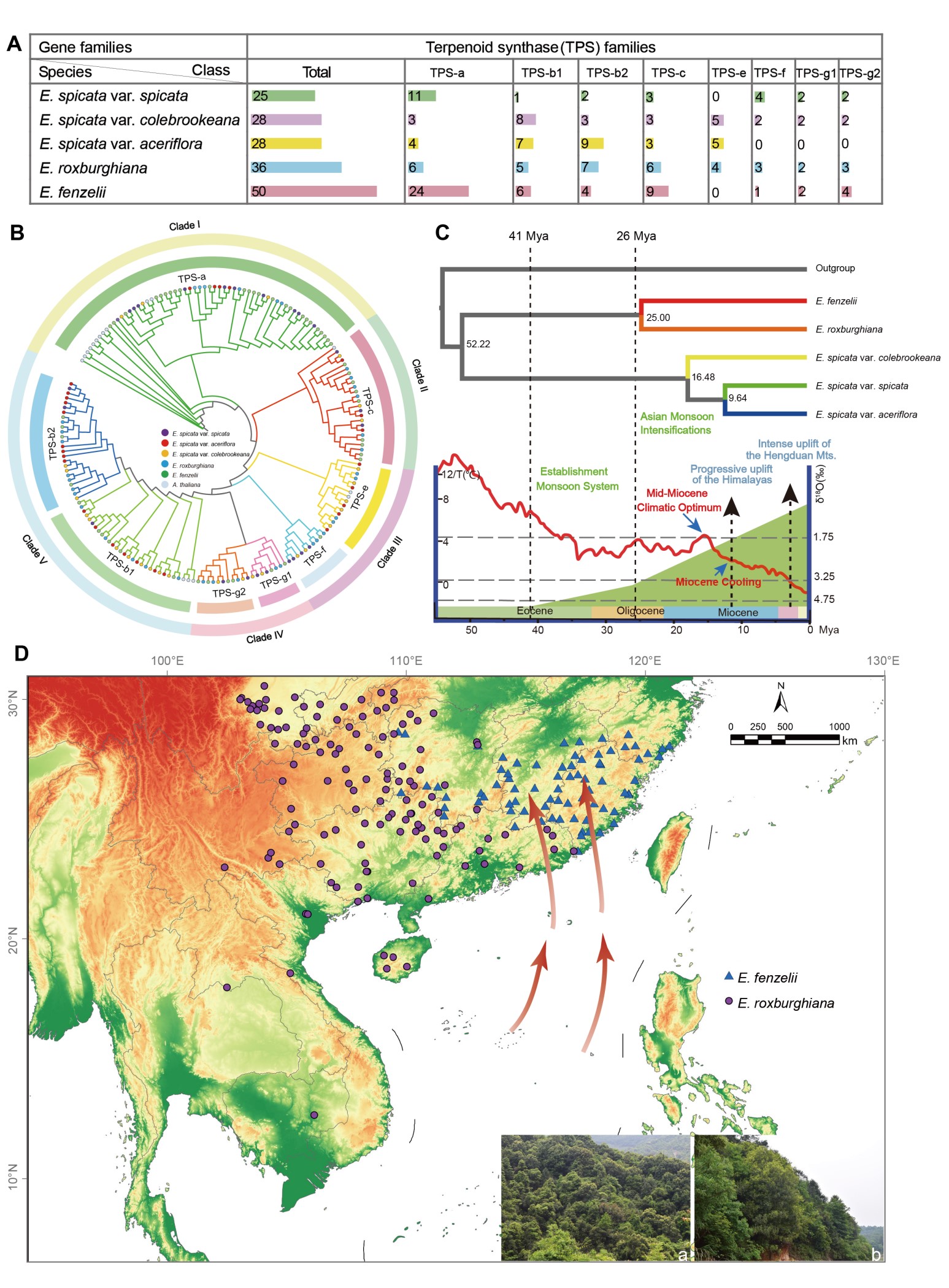 Notably, E. fenzelii exhibits a significant expansion of the TPS gene family, which likely contributes to its enhanced survival in humid, competitive environments. “Additionally, transposable elements play a key role in the larger genome size of E. fenzelii, further facilitating its adaptation to the moist, monsoonal climate,” adds Meng.