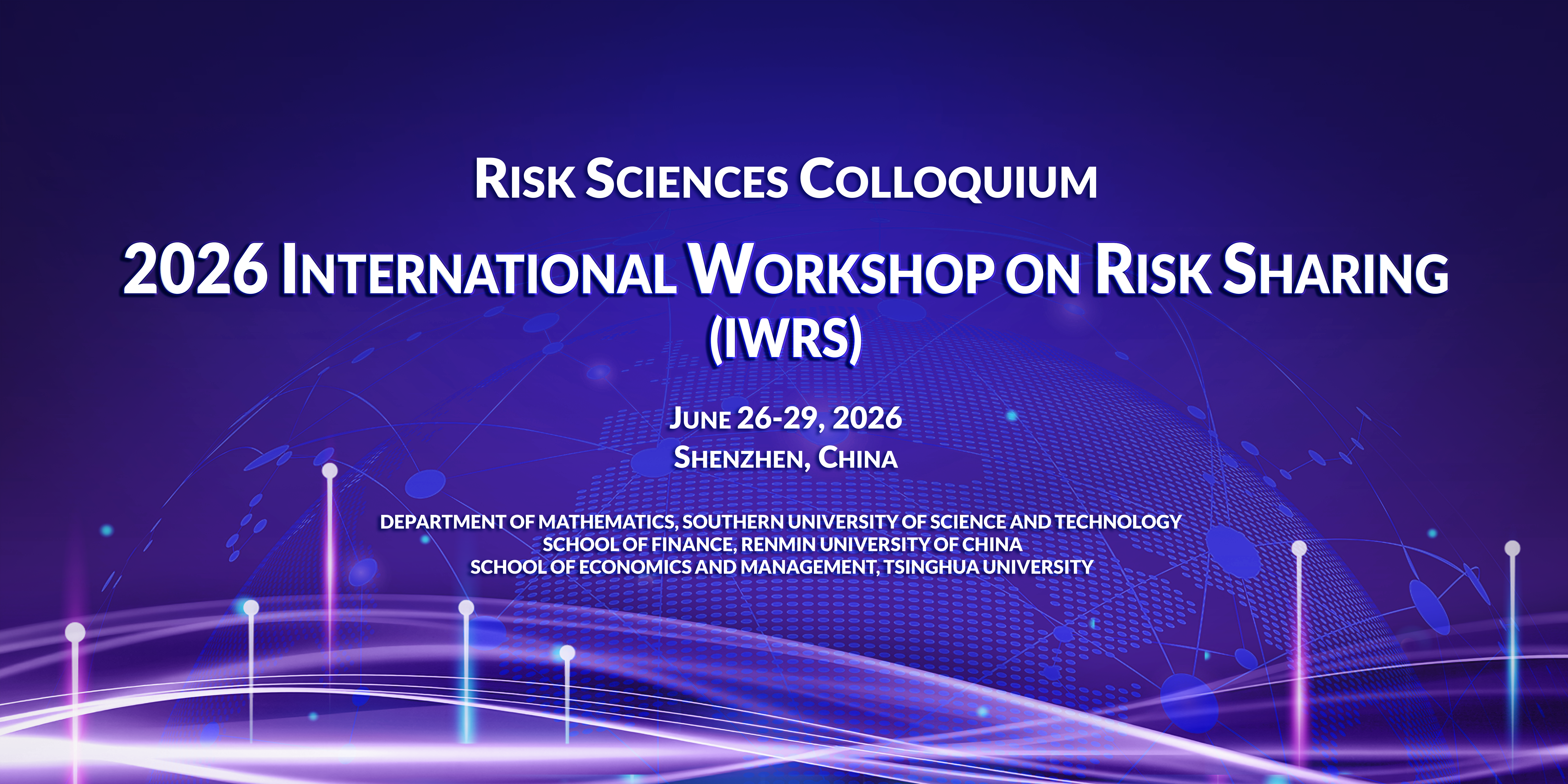 The International Workshop on Risk Sharing (IWRS) series was established in 2024 by a dedicated group of researchers. Following the success of the inaugural event at the Southern University of Science and Technology (SUSTech) and the profound academic impact of the 2025 workshop at Tsinghua University, the 2026 IWRS will return to SUSTech.