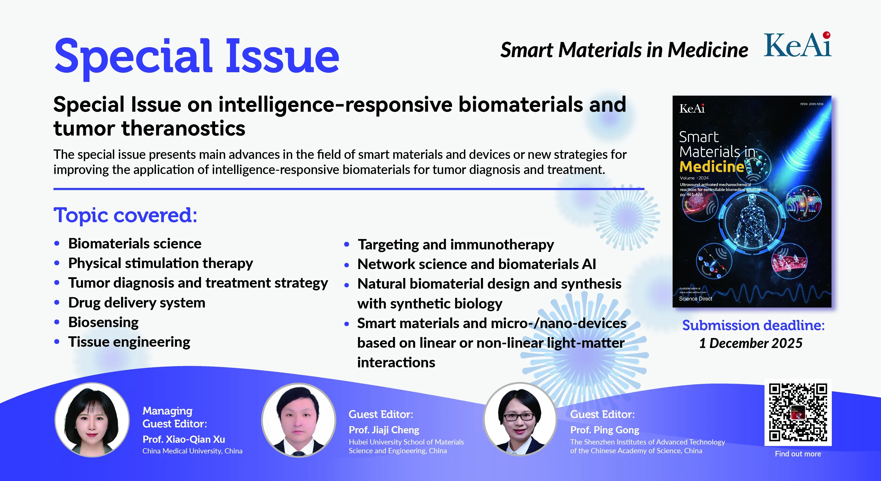 The issue accepts articles covering in vitro and in vivo evaluations, pre-clinical studies, clinical translation and applications of intelligence-responsive biomaterials especially in tumor theranostics. Manuscripts based on multidisciplinary contributions from scientists and clinicians are especially encouraged.