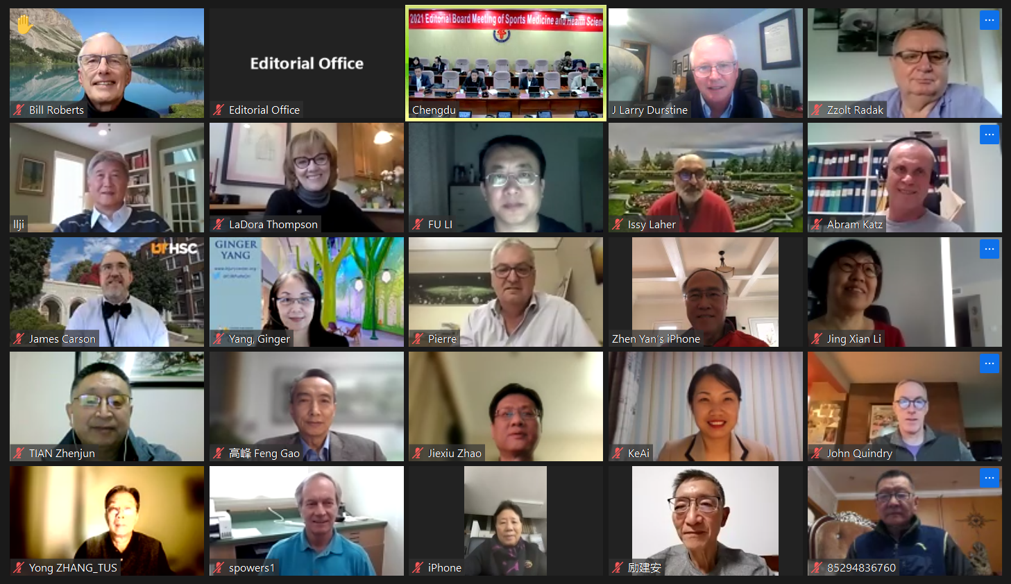 The meeting was attended by Xiaofei Pan, the President of CDSU, and Weiping Shu, former president of the CDSU, who are both members of the editorial office. They were joined by Junshi Chen, honorary Editor-in-Chief, J. Larry Durstine and Quansheng Su, Editors-in-Chief, Li Ji, Benxiang He and Zsolt Radák, deputy Editors-in-Chief, and more than 40 other board members.