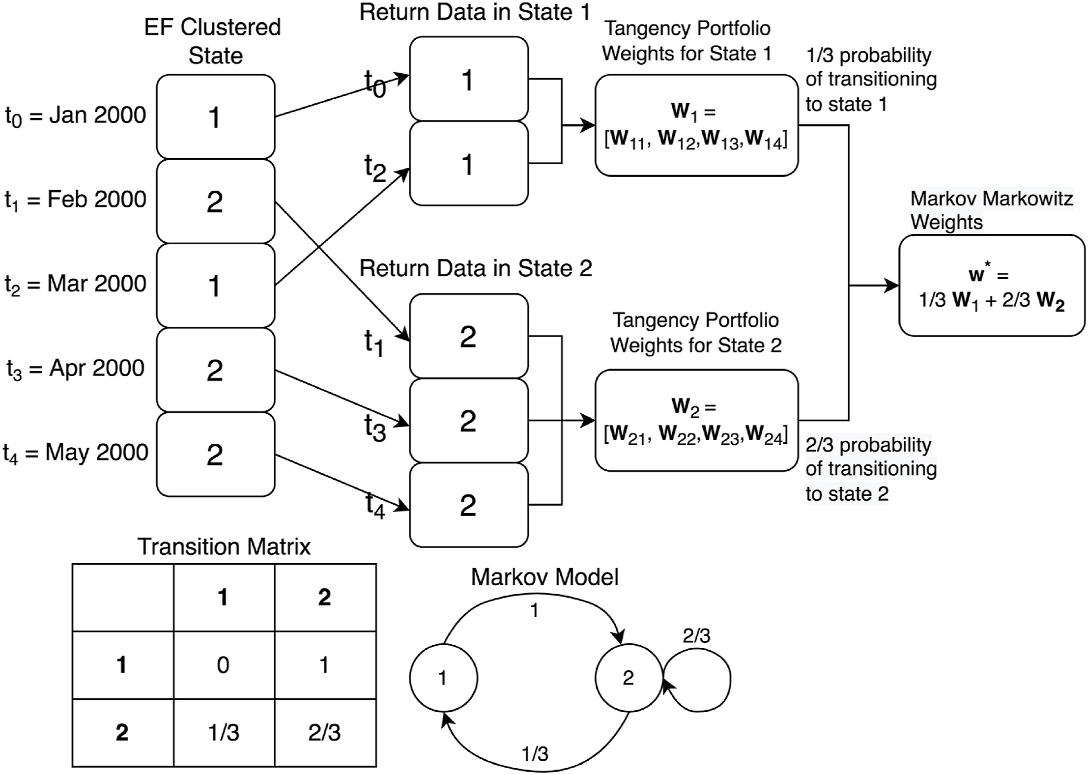 See the article: Nolan Alexander, William Scherer, Jamey Thompson. Asset Allocation Using a Markov Process of Clustered Efficient Frontier Coefficients States. The Journal of Finance and Data Science, 2023. https://doi.org/10.1016/j.jfds.2023.100110