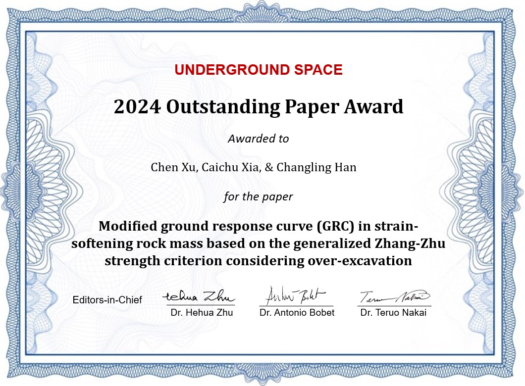 We are pleased to announce that the winner of the Outstanding Paper Award 2024 of Underground Space is