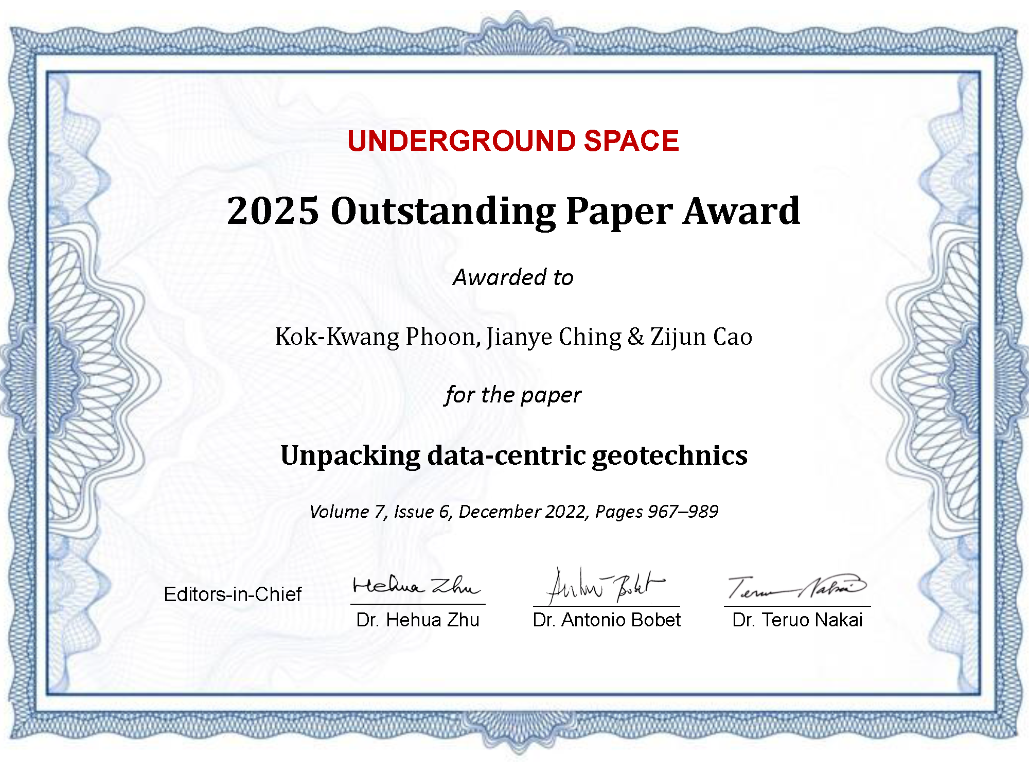 We are pleased to announce that the winner of the Outstanding Paper Award 2025 of Underground Space is