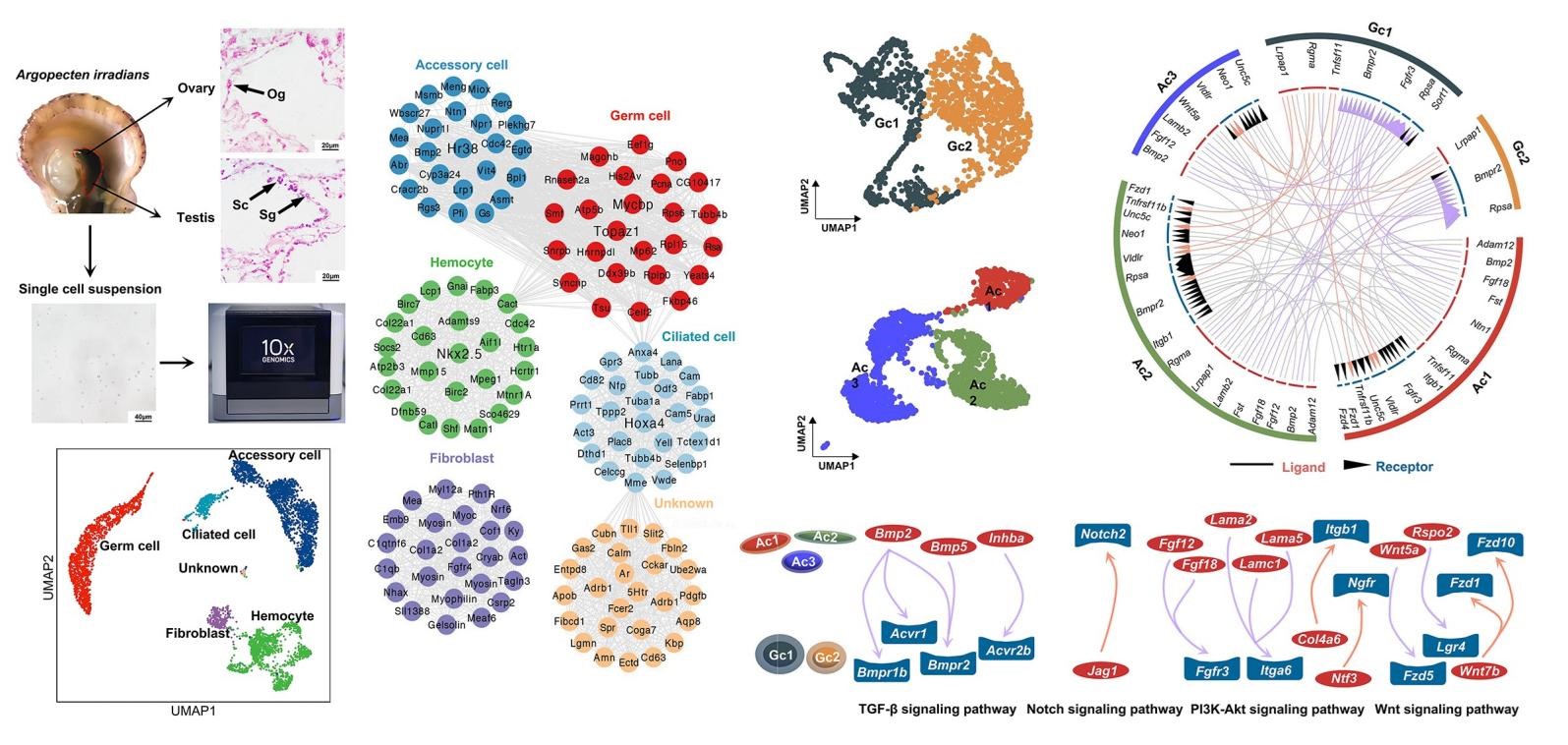 Using single-cell RNA sequencing (scRNA-seq), the team profiled over 5,600 individual cells from the gonads of six-month-old scallops. They identified six major cell types, including germ cells and five types of somatic cells, such as accessory cells, hemocytes, and ciliated cells.