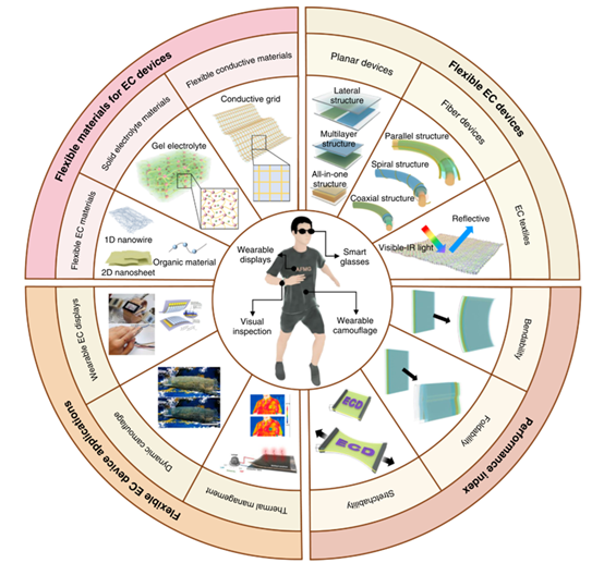 See the article: Q. Fan, Z. Bai, B. Bao, C. Hou, Y. Li, Q. Zhang, K. Li, H. Wang. Flexible electrochromic devices for wearable electronics. Wearable Electronics, Volume 2, 2025, Pages: 171-214, https://doi.org/10.1016/j.wees.2025.05.001