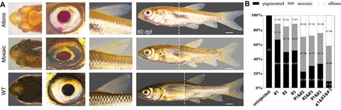 See the article: Pengfei Zhao, Jiaxiang Cheng, Liang Zhang, Wenbo Li, Shengfei Dai, Minghui Li, Deshou Wang, Xingyong Liu, 2025. Highly efficient disruption of tyrb gene using CRISPR/Cas9 in grass carp (Ctenopharyngodon idella). Reproduction and Breeding, 5(1), 38-44. https://doi.org/10.1016/j.repbre.2024.12.003.
