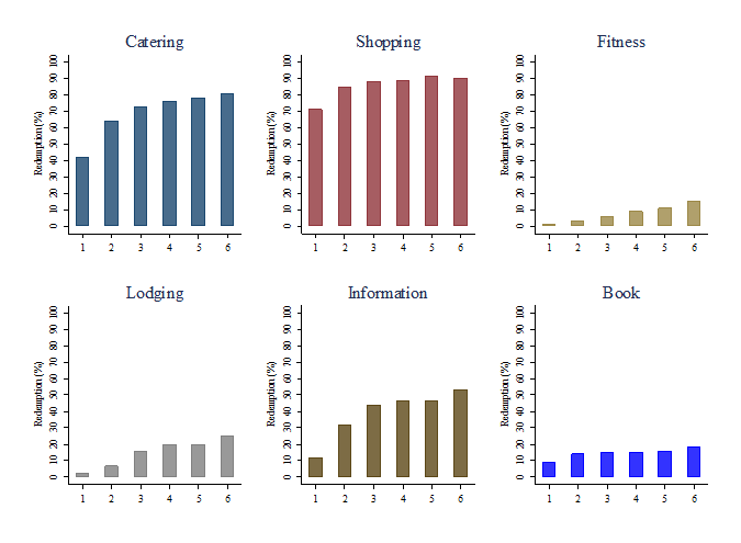 The researchers found that the redemption rate of the Shaoxing coupons increased in each wave. Yin says: “It was only 38% for the first release, then it immediately rose to 60% during the second wave and eventually reached 70% in the sixth wave. After the first release of coupons on 3 April, the redemption rates of shopping and catering were the highest, 71% and 42%, respectively, followed by coupons for cell phones. Those for books, lodging and fitness had low redemption rates. By the last wave of coupons on 8 May, the redemption rates for shopping and catering had rising to 90% and 81%, respectively, while cell phones jumped to 53%.”