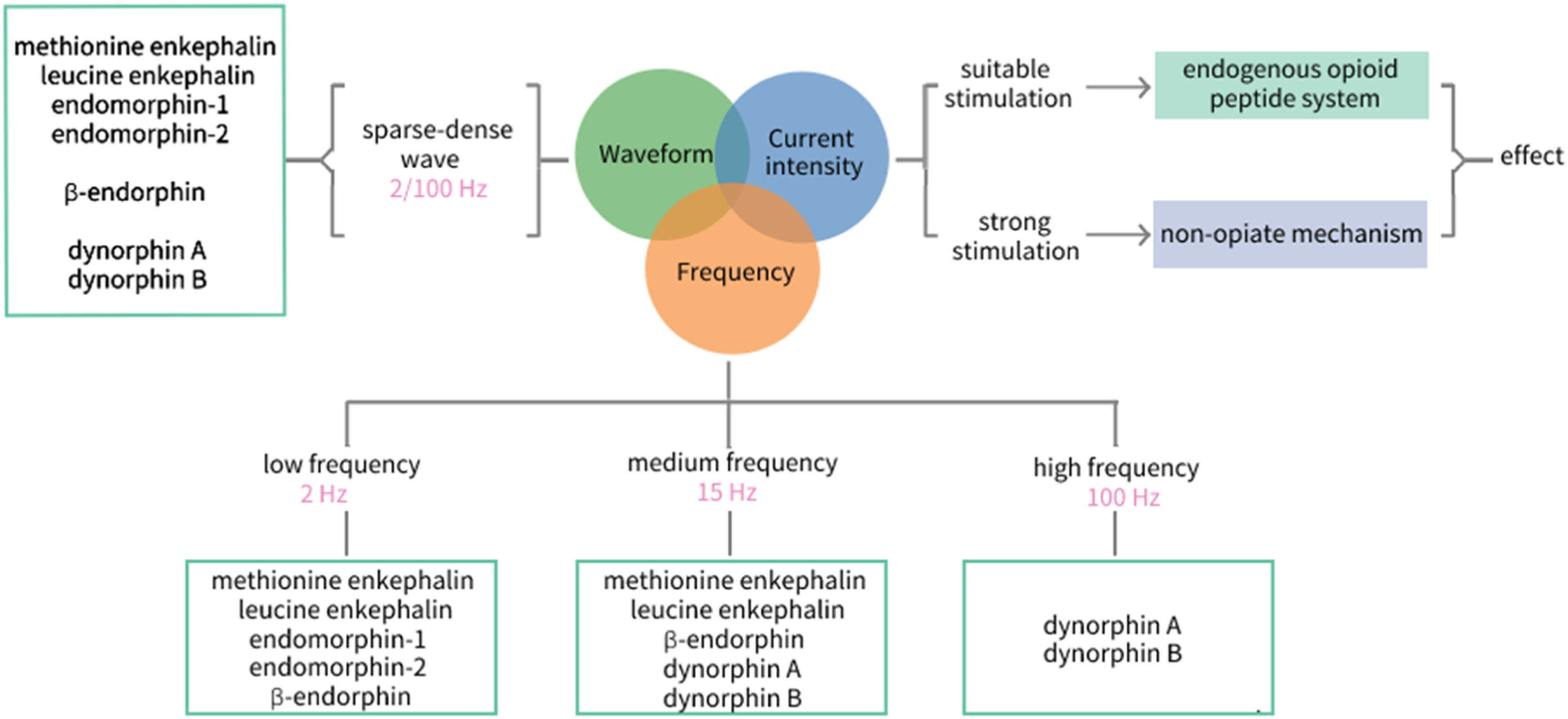 Image:Endogenous opioid peptides system and dose-effect relationship of electroacupuncture (frequency, waveform and intensity). CREDIT: Ping Chen and Xue-song TIAN