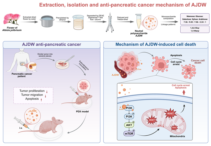 This discovery provides the material and theoretical basis for the potential anti-tumor effect of AJD, further facilitating the development of new anti-pancreatic cancer drugs based on natural ingredients.
