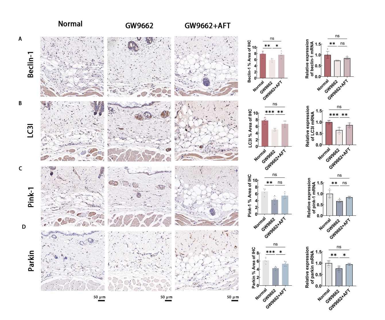“Using a mouse model treated with a PPAR-γ inhibitor (GW9662), we induced dWAT dysfunction, which led to fibrotic changes including reduced adipogenic markers (PLIN-1, PDGFR-α) and elevated fibrosis-related genes (Col-1, α-SMA, and TGF-β1),” explains Dr. Zhijin Li, lead author of the study. “Histological analysis confirmed increased collagen deposition in the dermis.”