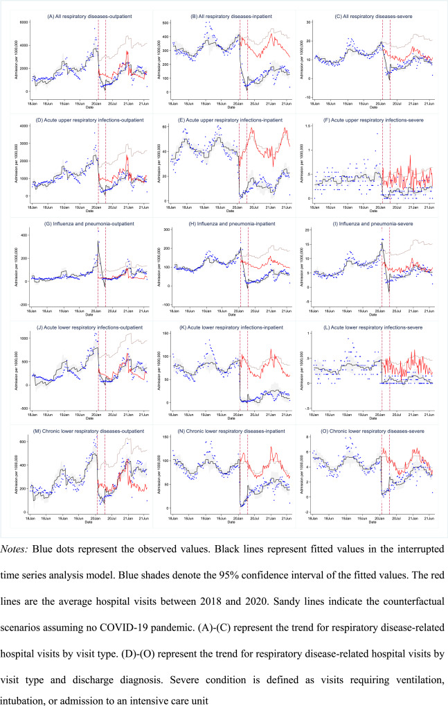 Image: Weekly hospital visits per million population in Wuhan between 2018 and 2021 across visit types and discharge diagnoses.