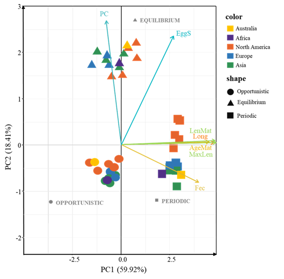 Recently, a multinational research team compiled life history trait data for 1,613 fish species across 14 major rivers worldwide. Their analysis revealed significant variation in the proportion of opportunistic, periodic, and equilibrium strategies among river systems. These differences were strongly associated with key environmental variables, including mean annual temperature, annual precipitation, annual variation in river discharge, and latitude.